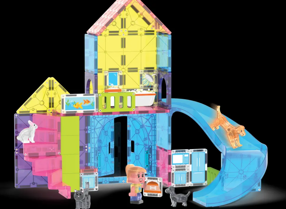 Adéntrate en un mundo donde las mascotas están aquí para jugar y la creatividad no tiene límites. Con la Casita de Juegos para Mascotas MAGNA-TILES, los niños pueden construir el paraíso perfecto para un cachorro juguetón, un gato curioso, un conejito saltarín y su aventurero amigo canino. Abre la puerta doble para una casita de juegos donde tus mascotas treparán por los muebles, se deslizarán por el nuevo tobogán y explorarán un espacio lleno de infinitas posibilidades imaginativas.