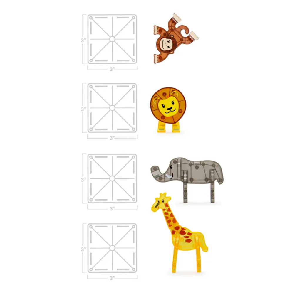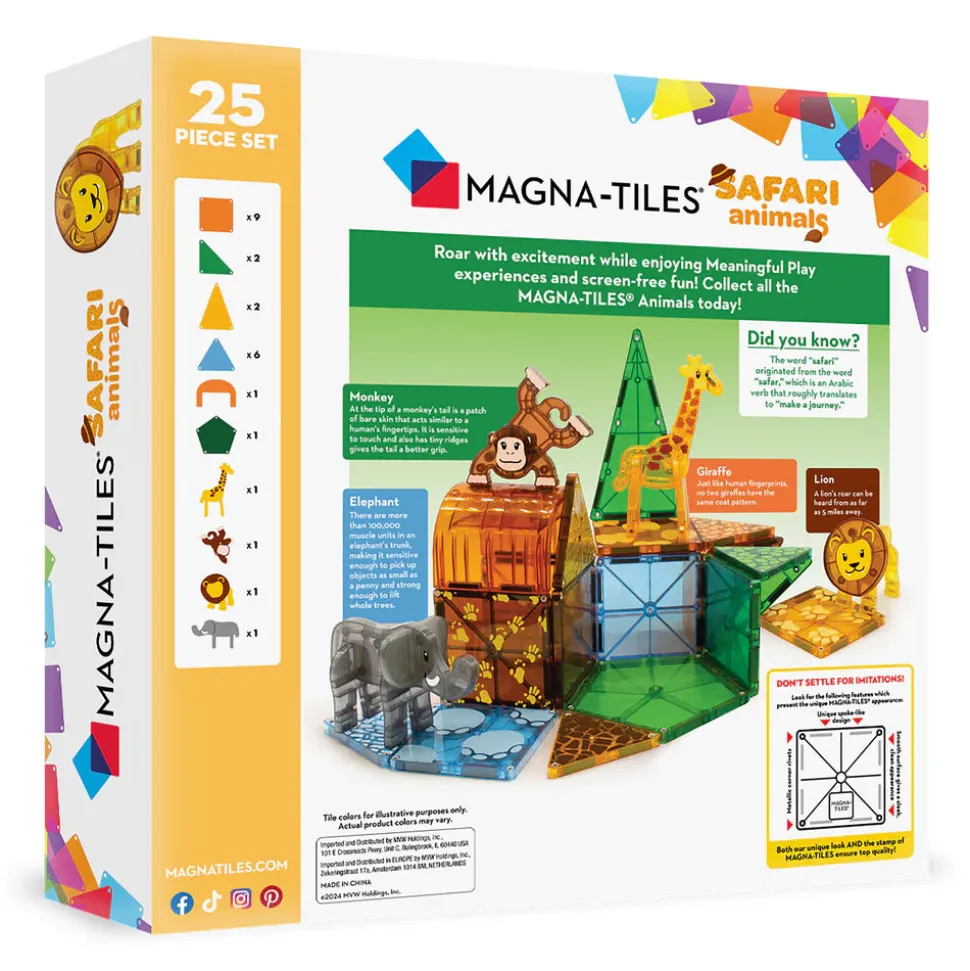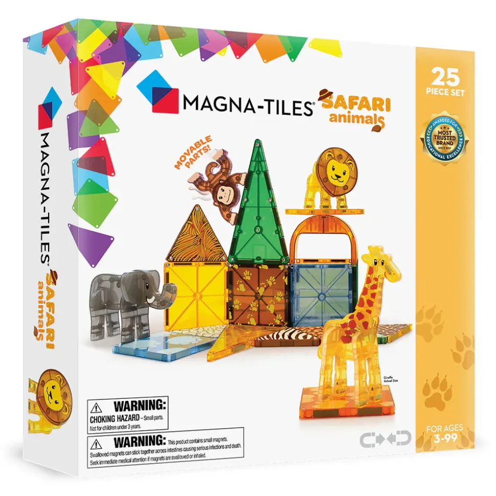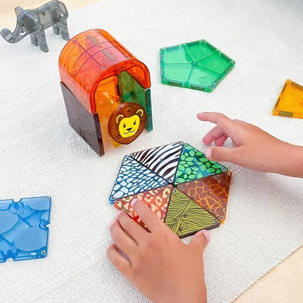 Embárcate en un safari lleno de diversión con el juego de 25 piezas Magna-Tiles® Safari Animals.