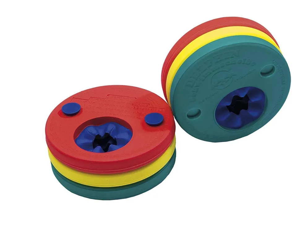 Los manguitos Delphin son unos manguitos evolutivos que estarán presentes en los veranos de tu bebé durante muchos años y no solo porqué estén fabricados con los mejores materiales y tengan un gran diseño que haga que no se deterioren. Al estar formados por discos que se pueden ir desacoplando conforme el peque vaya adquiriendo habilidades en el agua, permite ser usados desde 1 años hasta los 60 kg de peso.