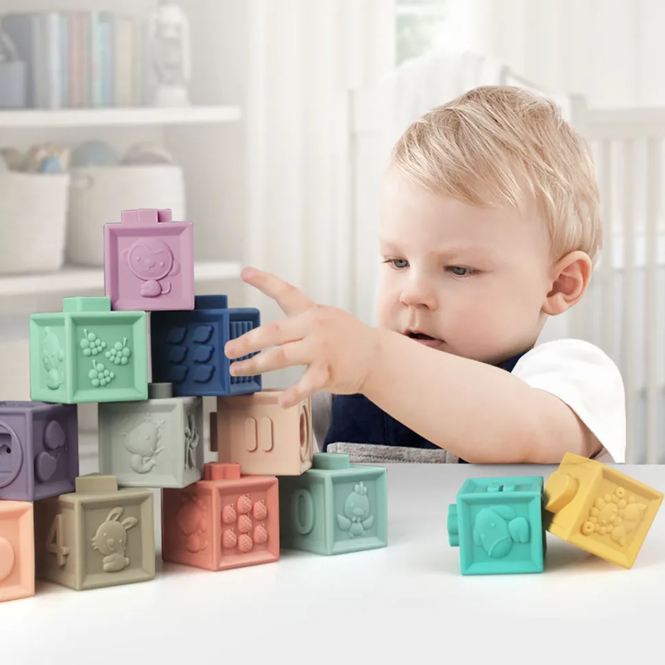 Con sus colores pastel, sus bonitas ilustraciones de animales, frutas, formas y números en 3D y su agradable textura, estos cubos encantarán a los niños. Fabricados en material blando, son seguros para los bebés. Los cubos son fáciles de agarrar, apilar y encajar para ayudar a desarrollar la motricidad fina y la coordinación del bebé. Los cubos educativos ofrecen infinitas posibilidades de juego. Los niños mayores aprenderán a reconocer los números y a contar mientras se divierten.