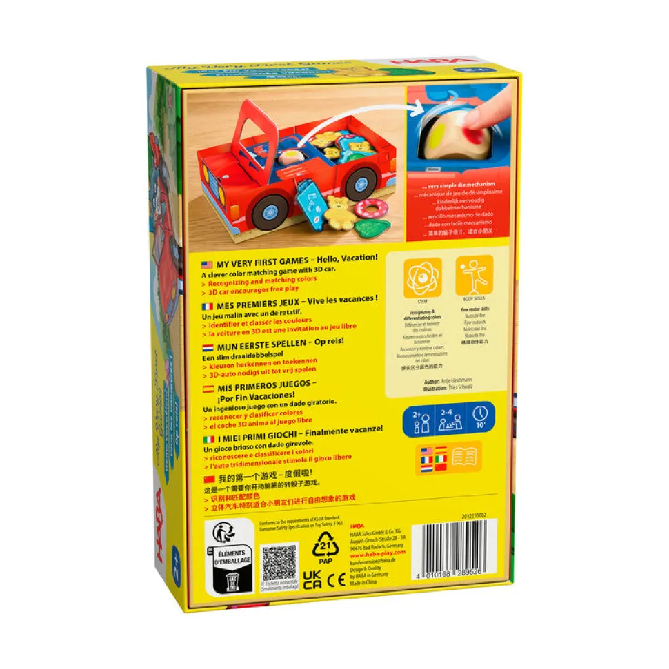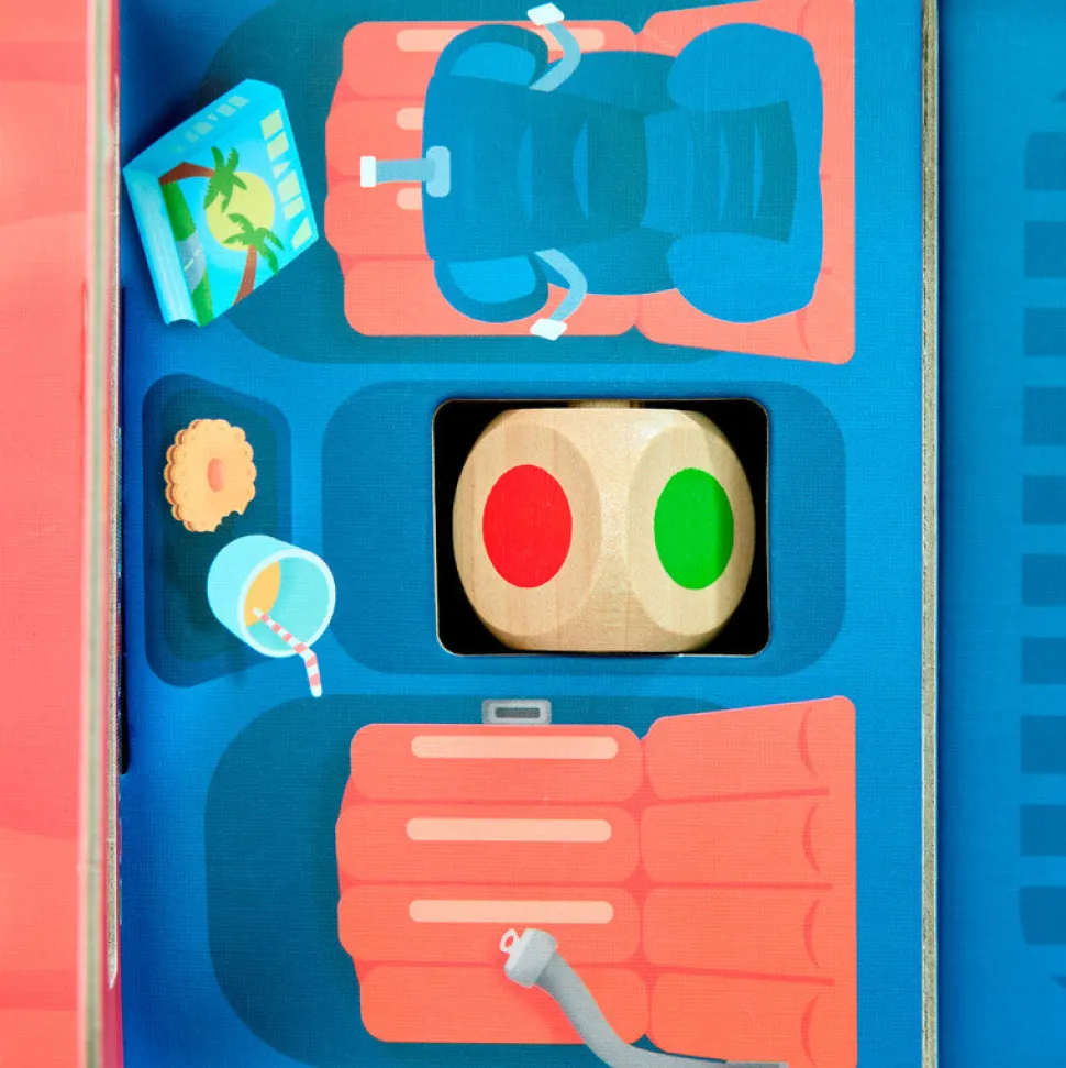 CONTENIDO: 1 base de la caja, 3 separadores, 1 capó, 1 maletero, 1 parabrisas, 16 bultos de equipaje (4 maletas, 4 mochilas, 4 flotadores, 4 ositos de peluche), 1 varilla, 1 dado, 1 instrucciones