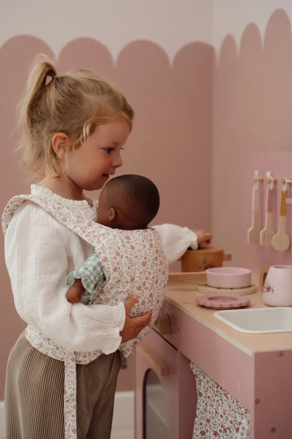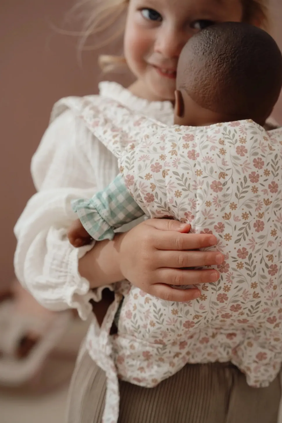 Embárcate en una aventura con este cómodo portamuñecas y lleva a tu bebé a todas partes. Las correas de hombro ajustables y acolchadas y el resistente cinturón lumbar garantizan que tu muñeca esté sentada de forma segura y cómoda. Lleva a tu muñeca cerca de ti o mirando hacia delante, según tus preferencias. Diseñado con el suave y dulce estampado Soft Flowers para un look elegante. Ideal para juegos de rol e imitar el cuidado de bebés reales, manteniendo las manos libres.