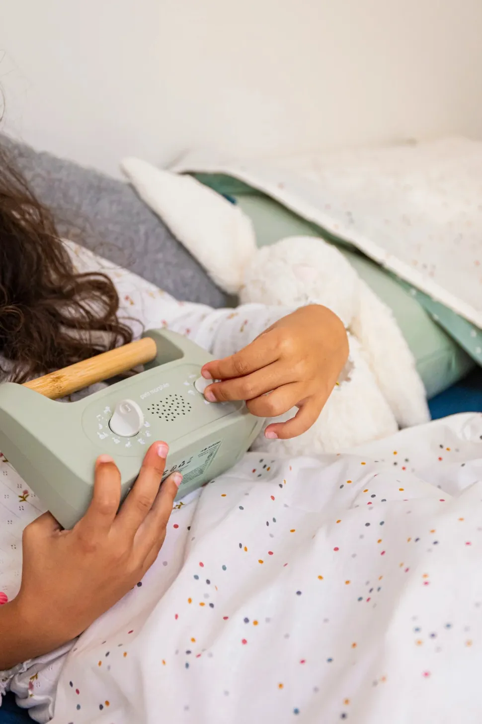 My Little Morphée plantea una alternativa saludable y muy recomendable a la hiperestimulación a que están sometidos niños y niñas hoy en día, eliminando de su diseño elementos como las pantallas y recuperando un aspecto y mecanismo más analógicos, pero siempre intuitivos. Es un dispositivo sin ondas, no conectado y que carece de elementos que generen una distracción. Todo ello ayuda a que los más pequeños se duerman rápidamente, induciendo un sueño profundo y reparador.