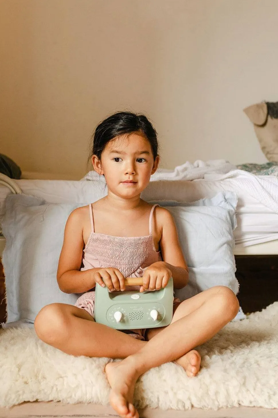 Se trata de un dispositivo, cuya forma recuerda a una radio portátil vintage, con un color y material suaves y natural. Está diseñado de forma que niños y niñas puedan manejarlo con autonomía, recurrir a él en el momento en que son conscientes de que necesitan bajar de revoluciones y seleccionar de qué forma utilizarlo según el momento concreto