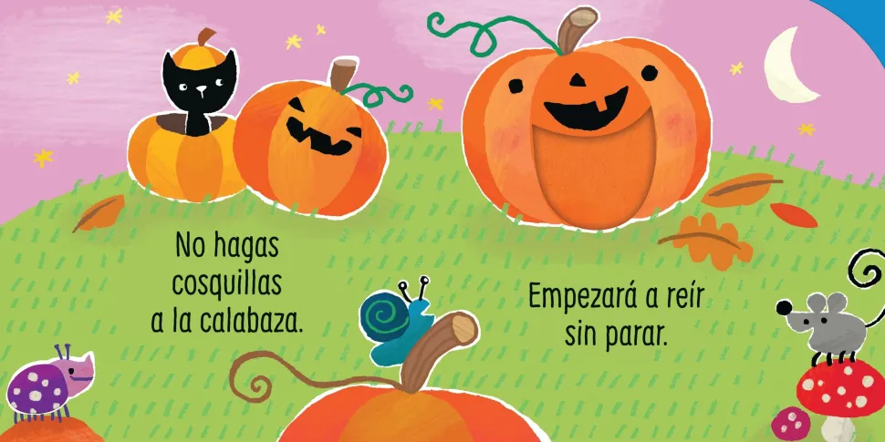 A los niños les encantará tocar los suaves parches y escuchar los graciosos sonidos de este libro. Además del esqueleto, hay un monstruo, un vampiro y una calabaza a la que hacer cosquillas. En la última página, los personajes protagonizan juntos un terrorífico baile de Halloween.