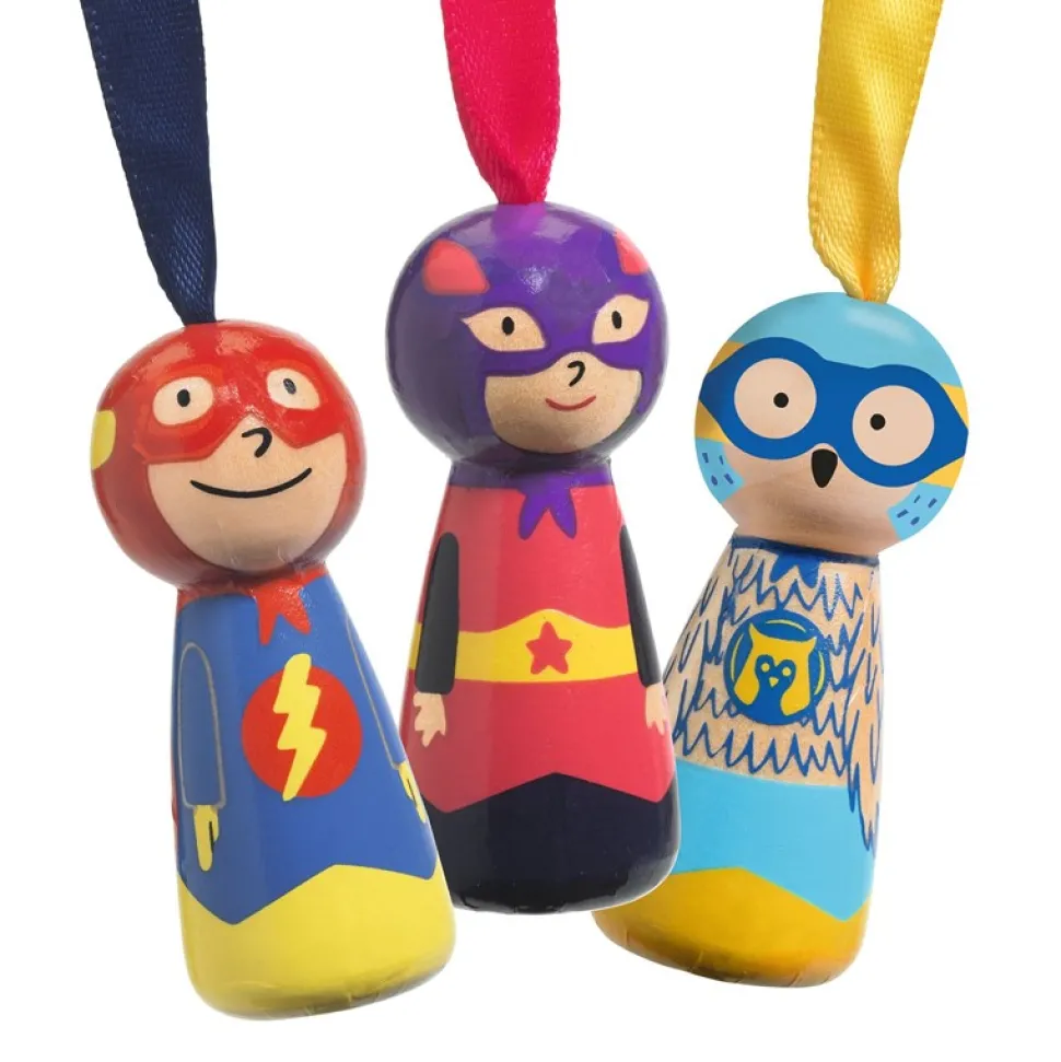 Los Flying Heroes son pequeños velocistas con paracaídas de madera que puedes lanzar para que floten al aire el mayor tiempo posible. Superflash, Supercat y SúperChouette se venden individualmente en bellas cajas. Un juego clásico modernizado!