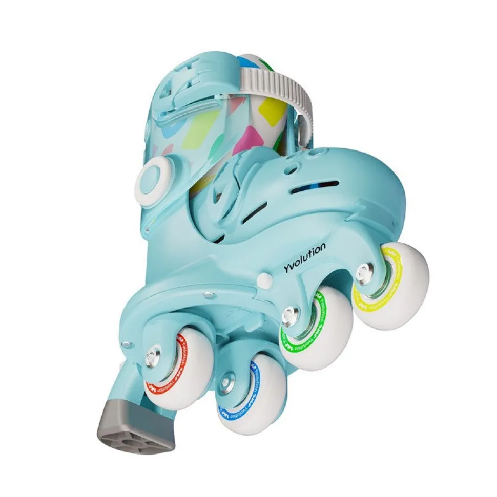 Los patines Yvolution Twista son patines de ruedas para niños pequeños. Ajustable hasta en 4 tallas con una simple pulsación, te será fácil ponértelas y descubrir las primeras sensaciones de deslizamiento. Las ruedas traseras modulares en línea o en paralelo evolucionan sin herramientas y ofrecen una estabilidad adaptada al progreso del niño. Lleva un mecanismo evolutivo para cambiar de 2 ruedas laterales a ruedas en línea sin herramientas.