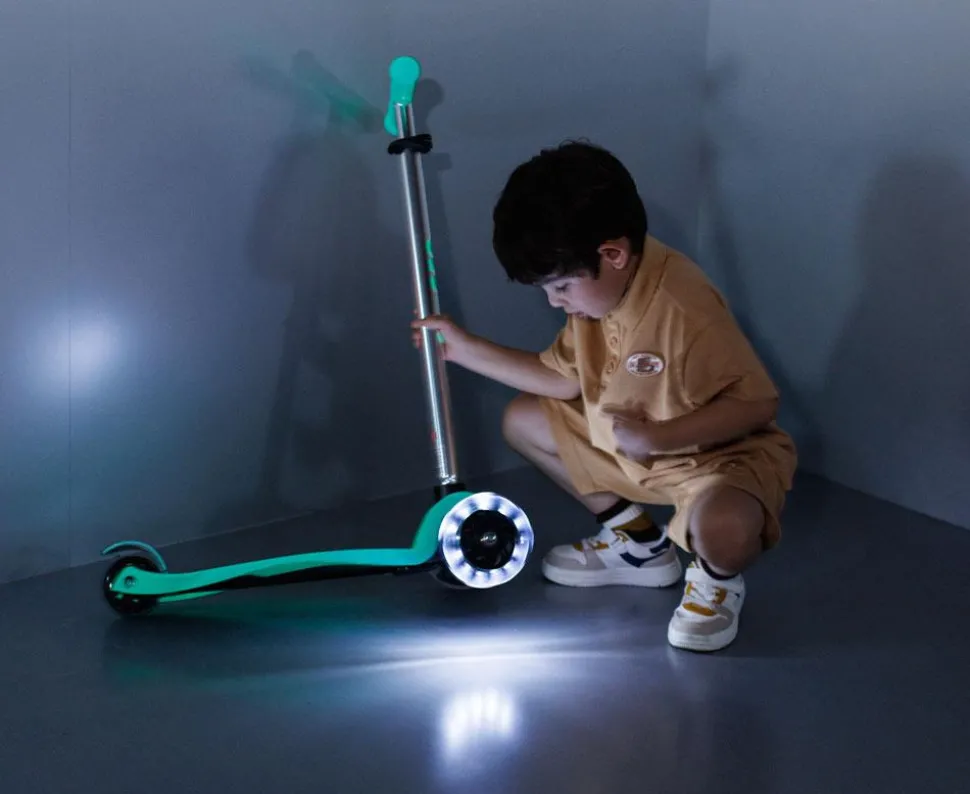 • Ruedas delanteras con luz led blanca para mayor seguridad