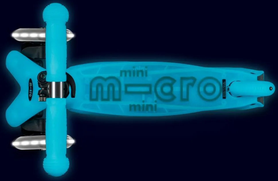 El Mini Micro ha sido elegido numerosas veces juguete del año por padres y madres. Este juguete deportivo no solo fomenta el movimiento y el ejercicio, sino que también ayuda a los niños a mejorar el equilibrio, la coordinación y las habilidades motoras finas. El manillar diseñado en forma de T hace más segura su conducción y dispone de un cierre de seguridad que hace que solo los adultos puedan desmontarlo para guardarlo. Dispone de un sistema de giro por inclinación patentado. La plataforma está fabricada con fibra de vidrio lo cual le otorga resistencia y flexibilidad. Además incluye letras de goma en relieve que son antideslizantes facilitando el manejo del patinete y dando seguridad extra a nuestros pequeños. Incorporan unas ruedas LED que funcionan a través de una dinamo, por lo que no requieren de baterías, sino que funcionan solo cuando nos movemos. Emiten una brillante luz blanca que, además de ser divertida para nuestros pequeños, les da seguridad al ser vistos con mayor facilidad en momentos de oscuridad. Por ultimo y en absoluta primicia, tanto la plataforma como los puños y el logo del manillar brillan en la oscuridad. La luz ultravioleta del ambiente diurno carga esos componentes y al llevarlos a la oscuridad hacen que el patinete que de dia tiene un tono pastel adquiera un tono neon brillante