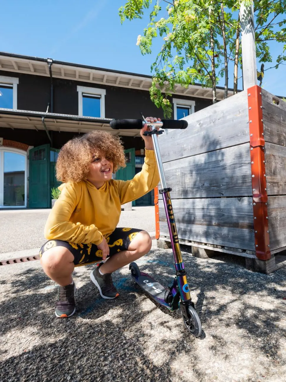 El nuevo Micro Neochrome LED combina el estilo clásico del patinete Micro con la modernidad de su color camaleón.