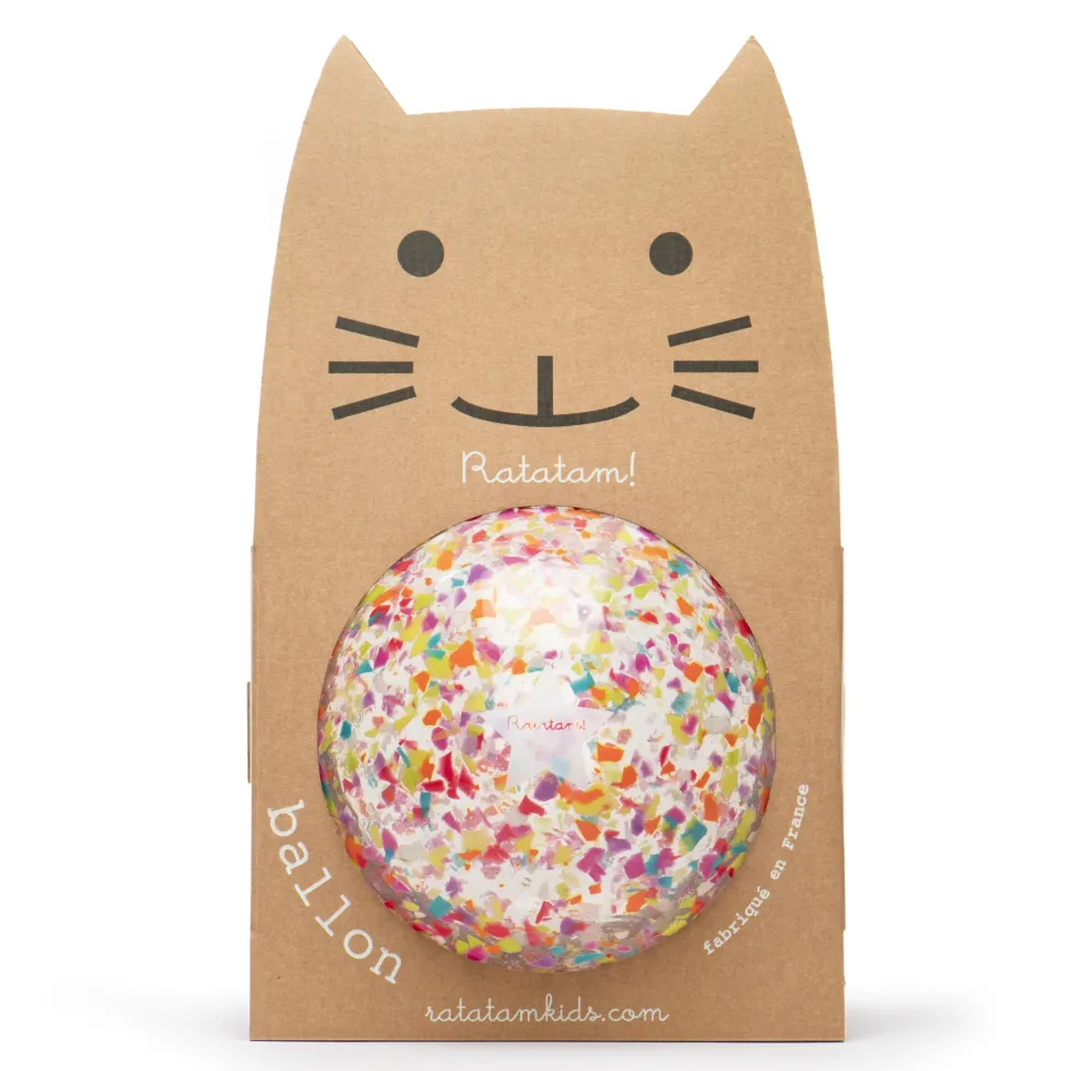 Pelota confeti multicolor, con 22 cm de diámetro.