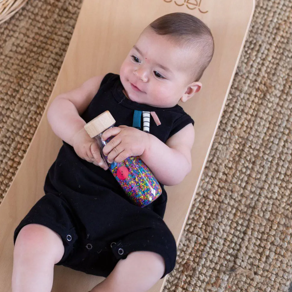 ¡Una dulce explosión de colores y sonidos para los más pequeños! Varios botones se esconden en un mar de granitos coloreados.