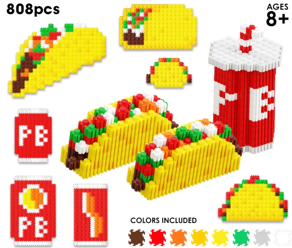Incluye 851 piezas Pix Brix en vivos colores con temática de comidas