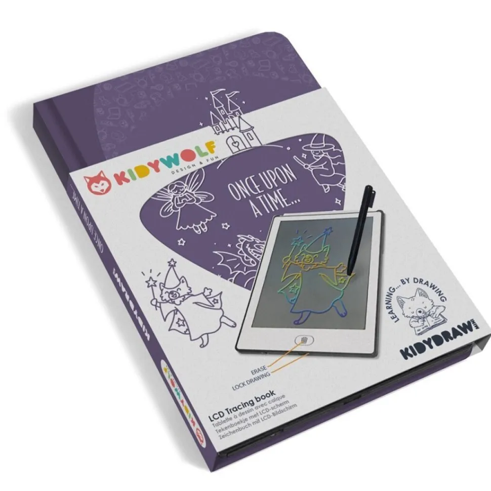 KIDYDRAW-MINI, un libro de dibujo con pantalla LCD que ofrece 30 ilustraciones de calco. Ideal para estimular la creatividad y el aprendizaje independiente, cabe fácilmente en cualquier bolso, permitiéndote crear en cualquier lugar y en cualquier momento.