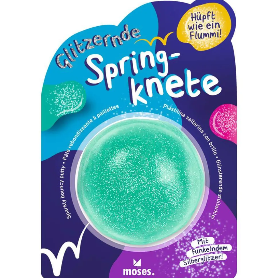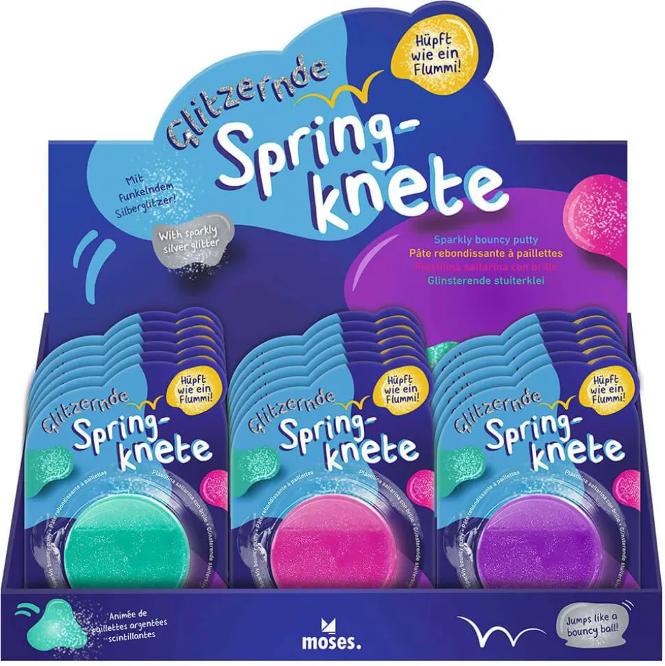 Plastilina moldeable y saltarina. De brillantes colores y con purpurina