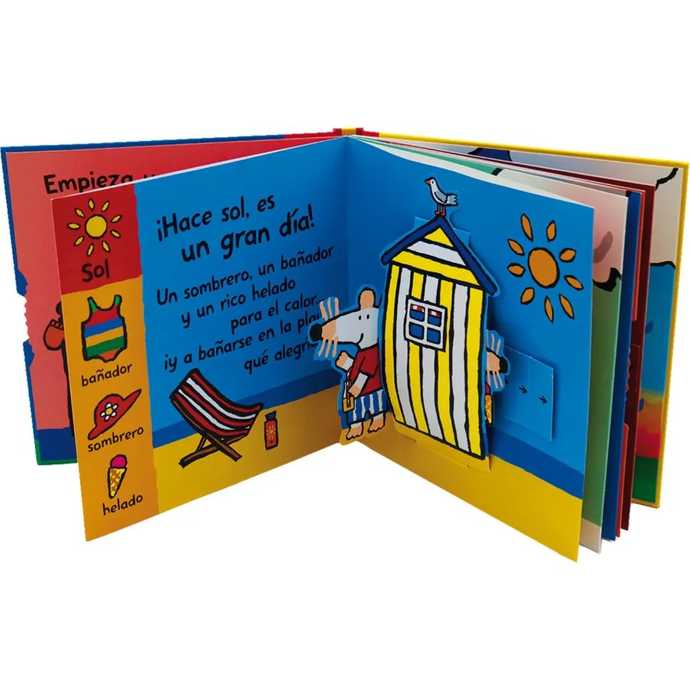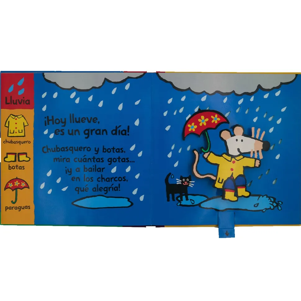 Sea un día de nieve, de lluvia o de sol, Maisy siempre se divierte, y éste es un libro que traerá la luz del arco iris a los días más aburridos. Repleto de ingeniosos pop-ups y de mecanismos de lengüeta, este es un texto educativo, haga el tiempo que haga.