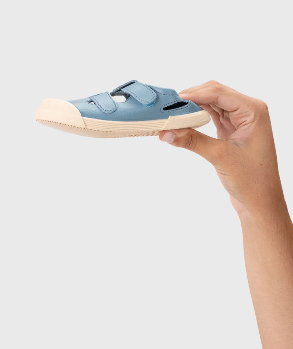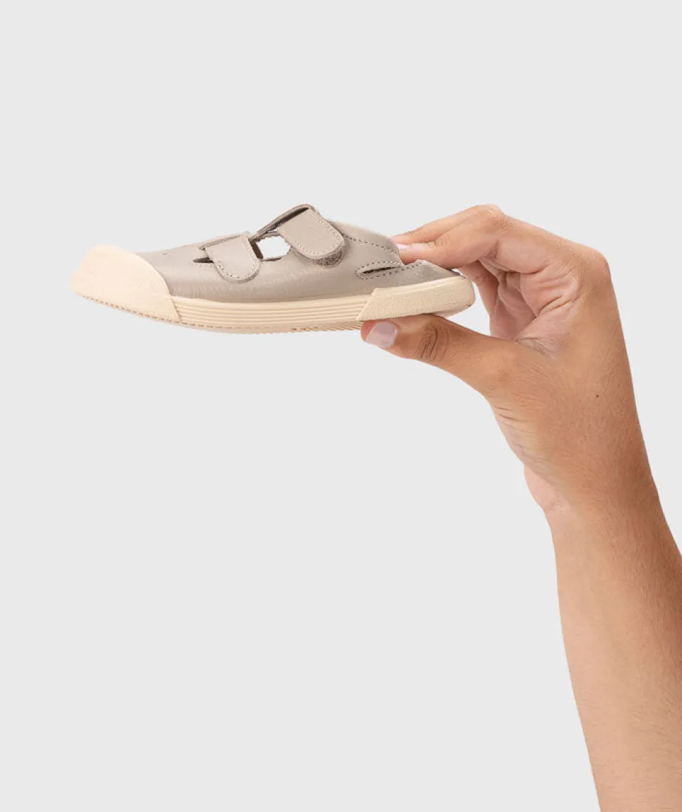 Sandalia cangrejera de piel, de concepto barefoot medium, con la puntera mucho más ancha que en modelos anteriores, cero drop, flexible, blandita y plantilla extraíble. Lavar en agua fría no sin antes extraer la plantilla.