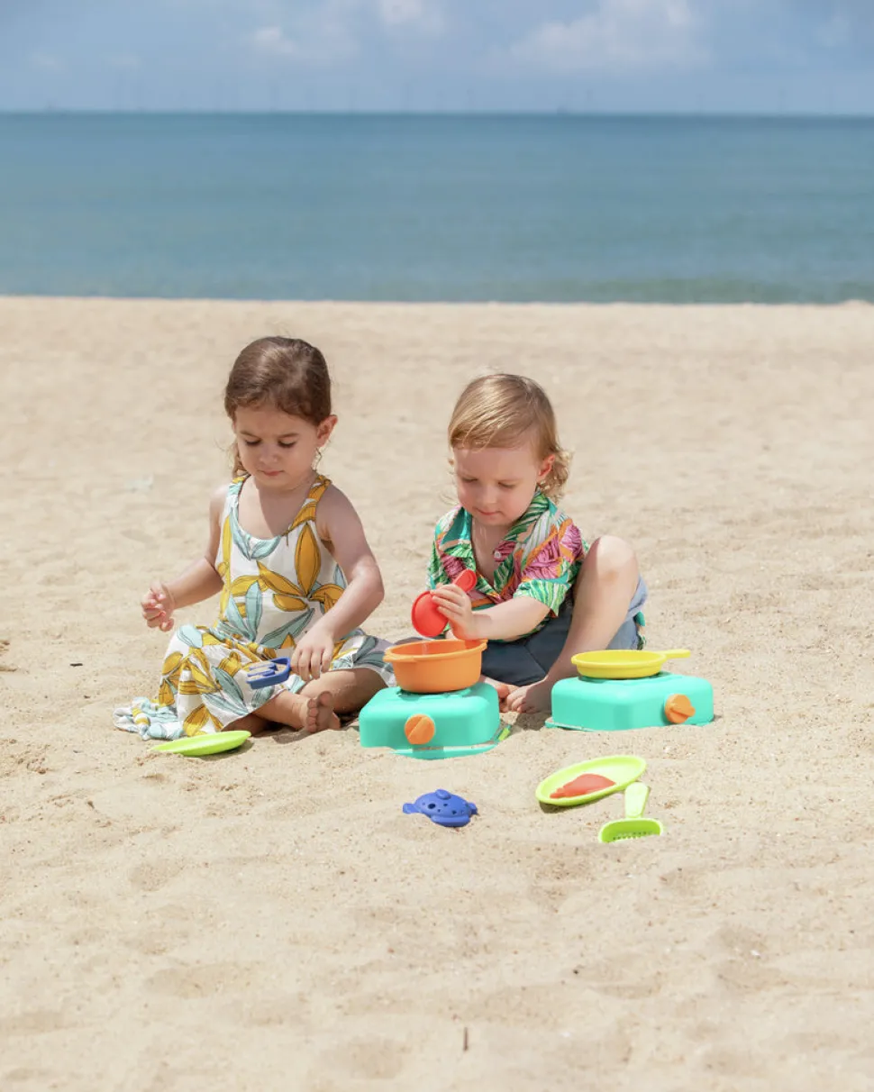 Deja volar la imaginación de tu hijo con este juego de cocina de playa, que incluye utensilios y moldes para recetas hechas con arena. Mejora la motricidad fina y fomenta el juego en grupo, ya que los niños asumen papeles de chefs y anfitriones. Con un montón de accesorios y un asa fácil de transportar, este juego hace que el tiempo de juego en la playa sea creativo y cómodo.