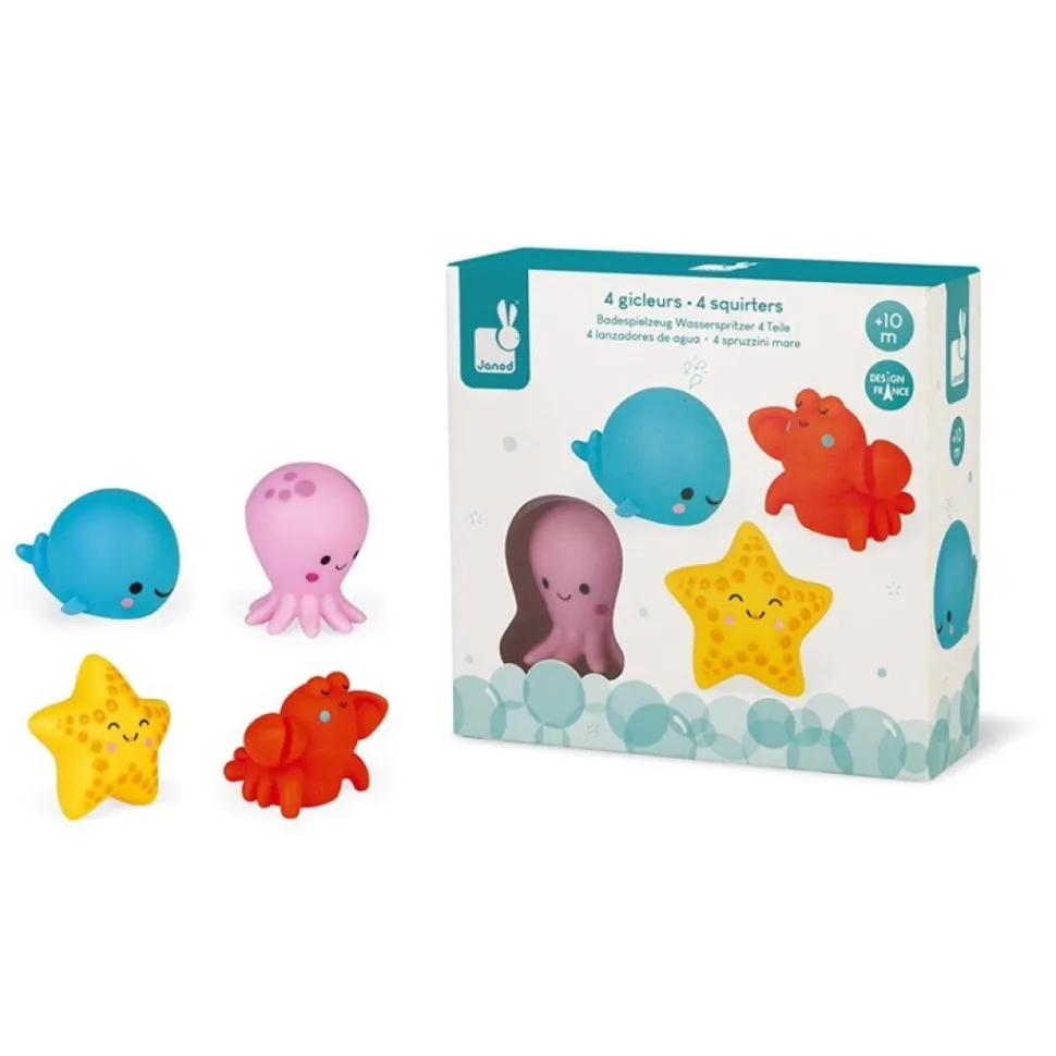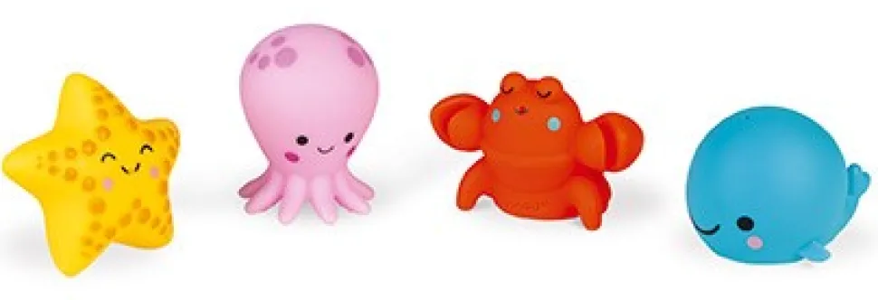 4 animales del mar: un pulpo, un bogavante, una estrella de mar y una ballena. Fáciles de agarrar con la mano, ¡para pasar horas jugando en el baño!