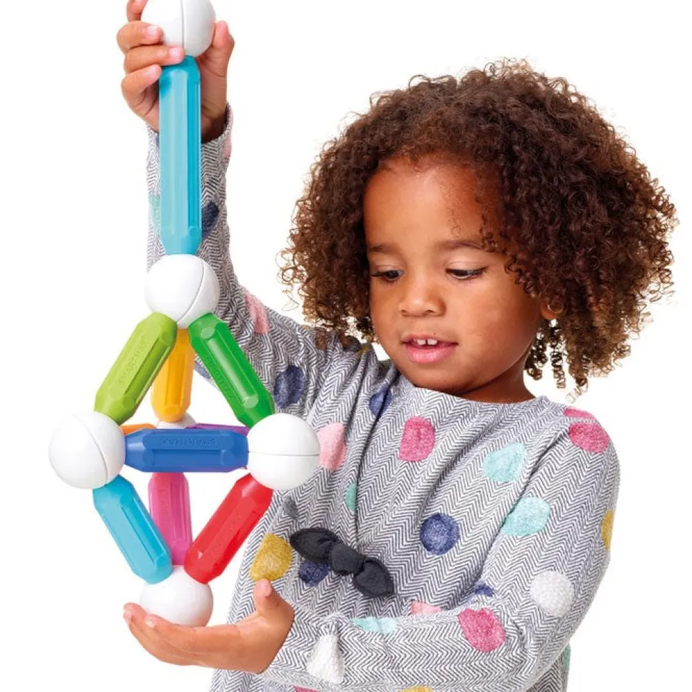 20 coloridas piezas magnéticas con las que podrán realizar multitud de divertidas construcciones. Todas las piezas son 100% compatibles con otros productos SMARTMAX.