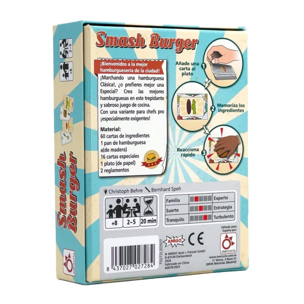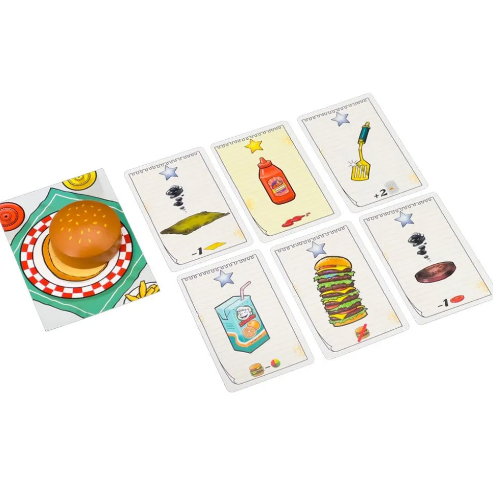 Gana quien consiga terminar correctamente el mayor número de hamburguesas en este dinámico juego de cartas ¡con una variante profesional para gourmets especialmente exigentes!