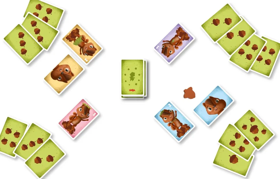 Clásico juego de cartas reinventado. En cada ronda, el objetivo es ser el primero en darle la vuelta a todas las cartas de puntos propios. Para lograrlo en cada ronda debemos hacernos con 11 bellotas exactas, sumando las bellotas de las cartas que pillamos del centro de la mesa.