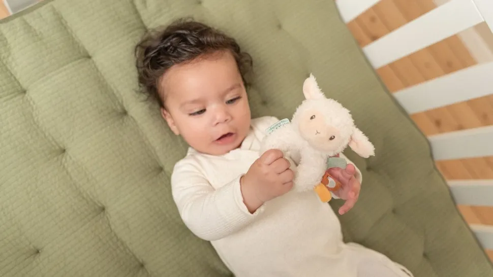 La forma de anillo hace que pueda ser fácilmente agarrado por las manitas pequeñas del bebé. Hay 3 pequeñas etiquetas en el sonajero para explorar que les encantarán.