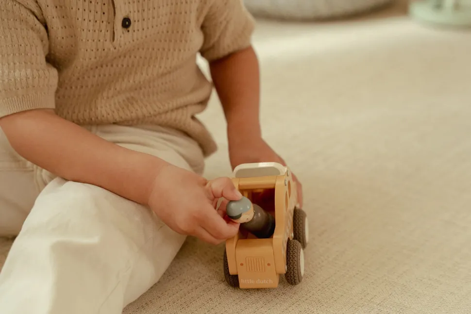 ¡Súbete y disfruta del viaje! Este taxi de madera está listo para llevar a los pasajeros sanos y salvos a su destino. Las ruedas de goma garantizan una conducción suave y el conductor está listo para partir. Recorre la bulliciosa ciudad, detente en la estación de tren y lleva a todos a casa sanos y salvos. ¡Un juguete atemporal! ¿Adónde vas hoy?