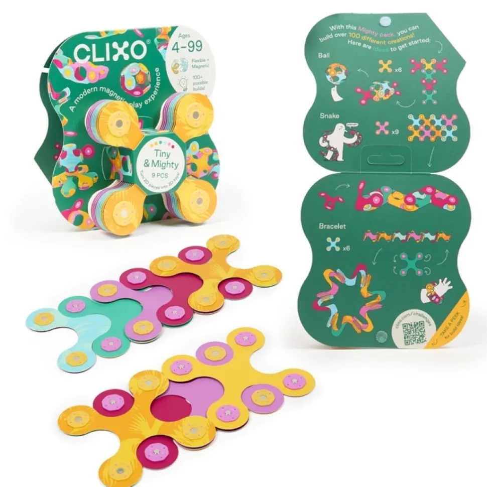 Contiene 9 piezas de la característica forma Quad de CLIXO para realizar más de 100 ocurrentes creaciones magnéticas.
