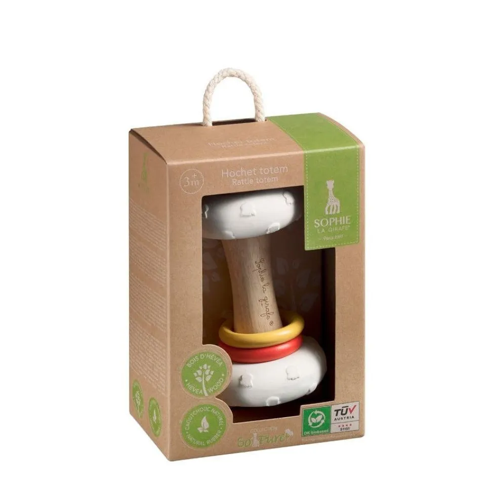 Este sonajero con forma de Totem de Caucho y Madera de Hevea incluye los elementos necesarios para estimular todos los sentidos del bebé. El sonajero tiene dos aros de caucho que se extraen para crear nuevas formas de juego. El Tótem forma la combinación perfecta para el bebé: un producto sostenible y divertido, ideal para el planeta y tu pequeño.