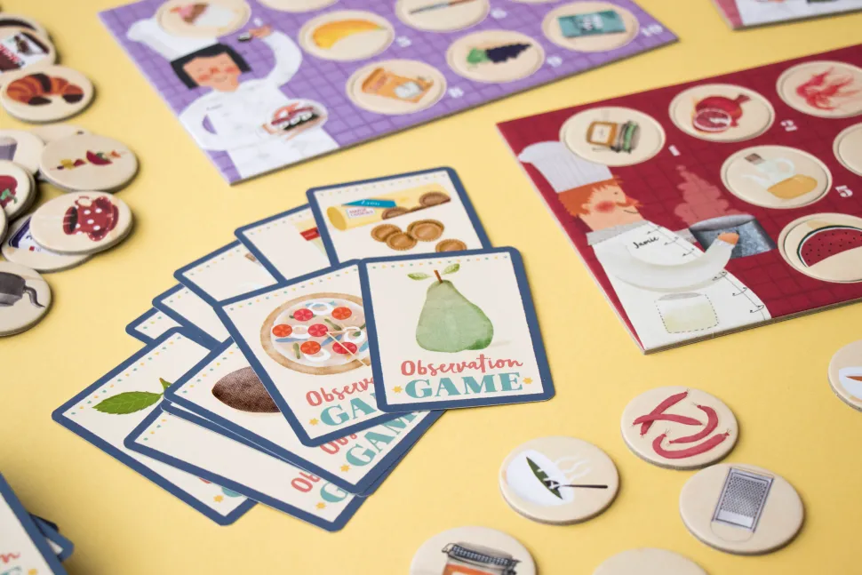 Un juego de observación y rapidez del mundo de la cocina. Un juego para toda la familia, diseñado y fabricado con mucho cariño en Barcelona. A partir de los 3 años.