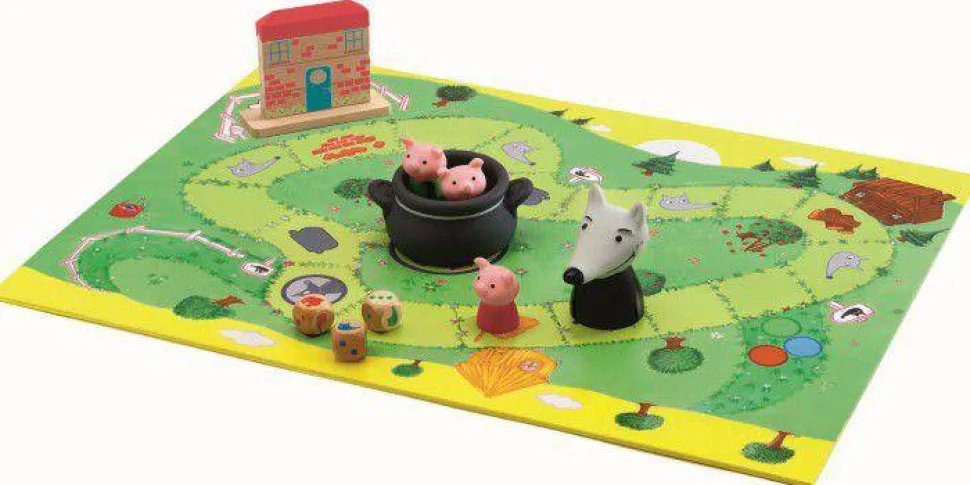 Un juego de cooperación en el que hay que ayudar a los tres cerditos a construir su casa de ladrillos antes de que el malvado lobo los atrape y los meta en la marmita. Si los tres cerditos logran llegar a su casa construida sanos y salvos, ¡todos los jugadores ganan! Por el contrario, si el lobo consigue atraparlos a todos, ¡es él quien gana la partida!