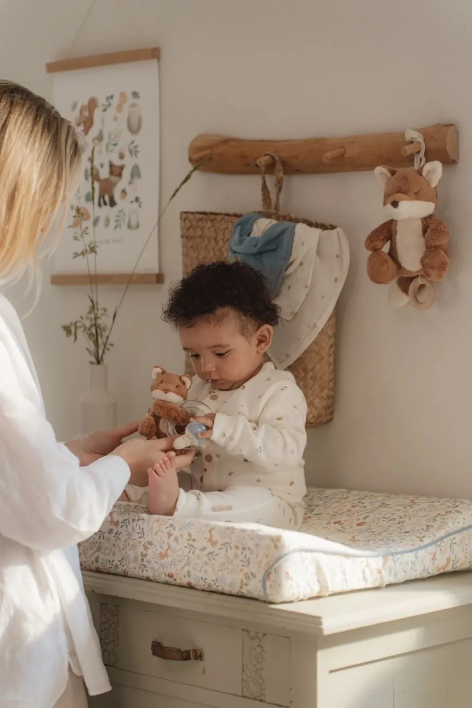 Dulces sueños! Este adorable zorro te guiará a un mundo de ensueño lleno de maravillas e imaginación. Mejora las rutinas para la hora de dormir con las encantadoras melodías de esta divertida caja de música. Baja el aro de madera y la relajante canción de cuna comenzará a sonar mientras tu pequeño se queda dormido. Un hermoso regalo y un encantador complemento para la decoración de la habitación del bebé.